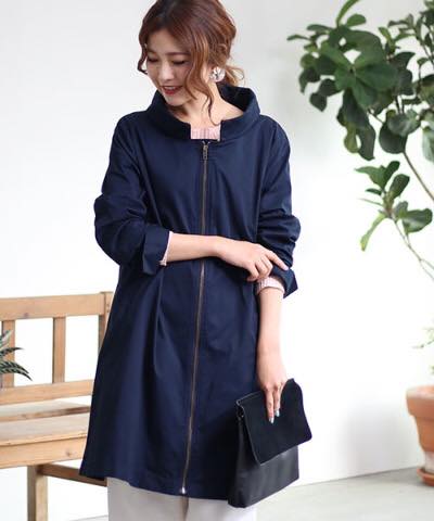 コットンのナチュラルな生地感がスプリングコートにピッタリの素材感、軽さ、伸縮性、ナチュラルなシワ感もそのままコートのテーストと合わせて楽しんで下さい。スッキリしたデザインながら、オリジナリティのあるスタンドネックも首もとのデコルテを綺麗に見せるポイント。ジップアップして着た際も首が詰まらず抜け感があり春の装いにピッタリ。シルエットは緩やかなAラインのシルエットを採用して女性らしい柔らかなラインに。カジュアルになりすぎないサラッと羽織ってお使い頂けるデイリー使用のコートとしてトレンチコートの変わりにおすすめのコート。裏地はなく1枚仕立てで秋口まで長く使えるのも人気の理由です!
