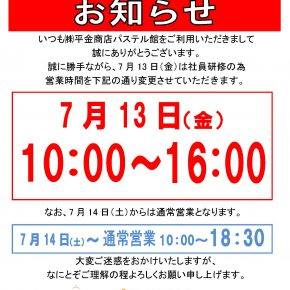 パステル館さん、7月13日(金)は研修があるので、16時まで、とのことです。 投稿者: 盛岡市肴町商店街振興組合青年部(4S会)2018年6月29日Facebook News パステル館さん、7月13日(金)は研修があるので、16時まで、とのことです。翌日からは通常営業とのこと。 — 7月13日のパステル館 営業時間変更のお知らせ http://dlvr.it/QYmN7n \ 最新情報をチェック / 共有: X で共有 (新しいウィンドウで開きます) X Facebook で共有 (新しいウィンドウで開きます) Facebook 関連 FacebookXBlueskyHatenaCopy