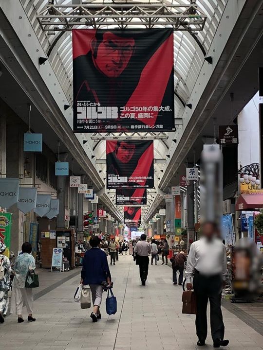 あさって開幕の盛岡展。地元の肴町商店街が、ゴルゴに染まっています‼️