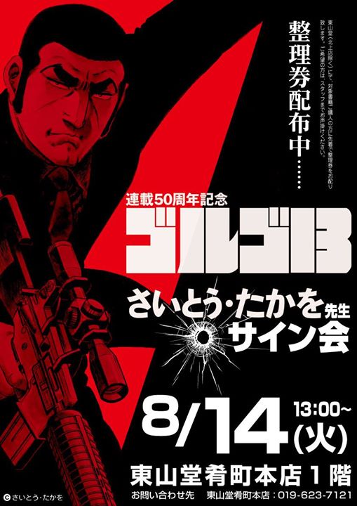東山堂さんから、なんと!肴町がゴルゴ13モードになっておりますが、さいとう・たかを先生のサイン会が決定したとのこと!!