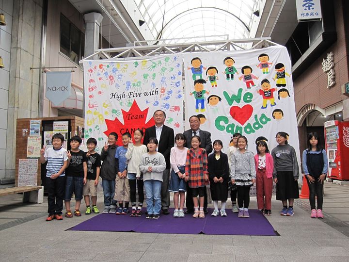 そして、盛岡市立杜陵小学校の児童14名のご協力を頂き除幕式を行いまして、本年のフラッグアート展が賑々しく幕開けとなりました。