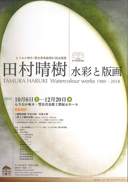 八戸市生まれで、盛岡市在住の田村晴樹氏は、岩手大学特設美術科を卒業、1991年には岩手県優秀美術選奨受賞。水彩画と水性木版画を制作の中心とし、県内外で活躍しております。また10月27日(土)にはギャラリートークを開催いたします。