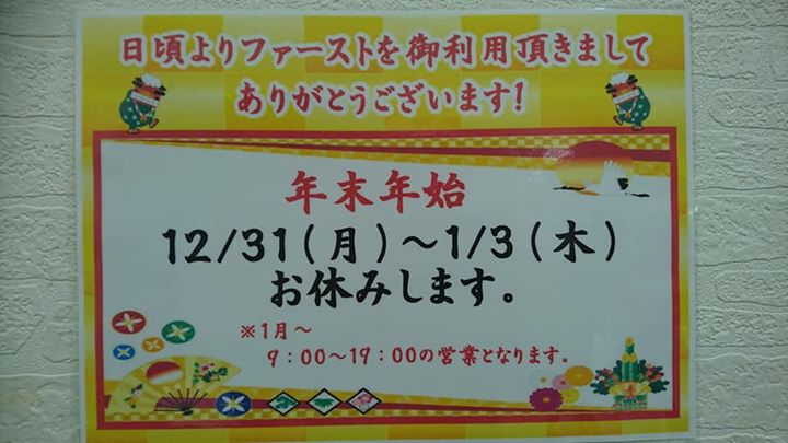 ファースト年末年始のお休みと、来年からの営業時間の変更のお知らせです❗
