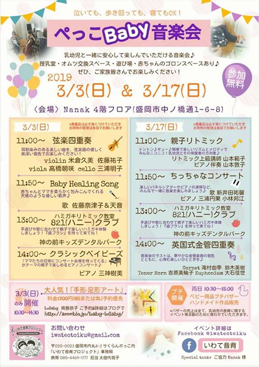 Nanak(ななっく)さん、から、ぺっこBaby 音楽会 のご案内です。