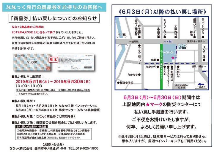 ■払い戻し申し出期間:2019年5月1日(水)~2019年6月30日(日) 10:00~19:00