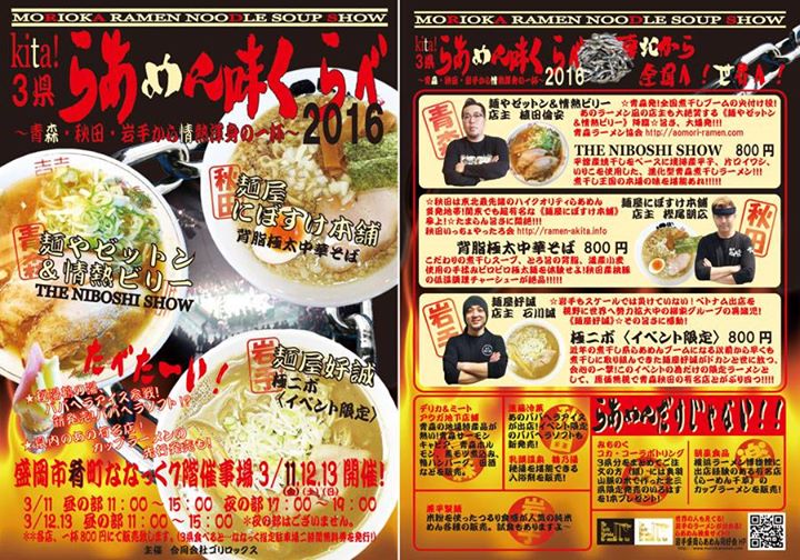 「Kita!3県らあめん味くらべ2016 ~青森・秋田・岩手から情熱渾身の一杯~」