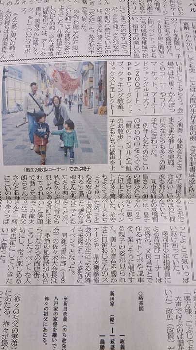 先日2016年5月7日の盛岡タイムスさんに、5月5日に開催された肴町こどもフェスティバル2016の記事を掲載いただいておりました。盛岡タイムスさんにはいつも取上げて頂きまして本当にありがとうございます。