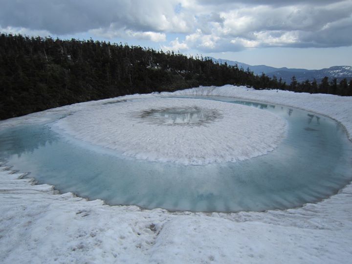 鏡沼のドーナツ型雪解けです♪