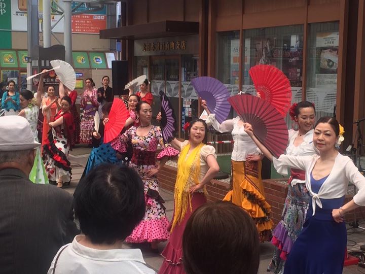 ストリートフラメンコ 始まりました。今日は10時30分、13時、15時と3回行われます。華やかな雰囲気をお楽しみ下さい