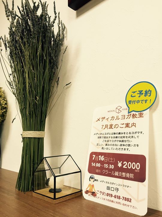其の壱 今週末の『メディカルヨガ教室』 残りわずかです!(患者様より戴いたドライラベンダーを添えて✨)
