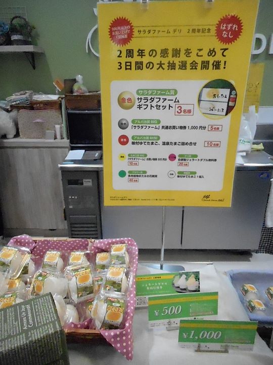 ななっくさんから、1Fのサラダファームデリさん、オープン2周年だそうです。早いですね~。いつも味付けゆで卵おいしく頂いています!