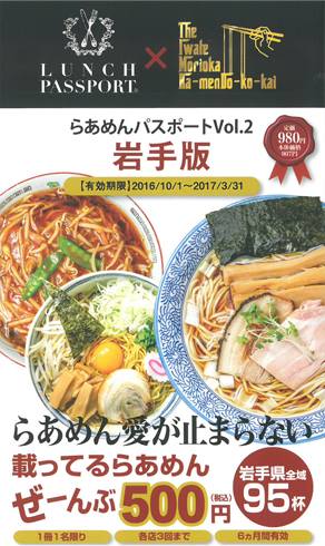 今度の”らあパス”は、載ってるらあめん全部(岩手県全域95杯)が500円!
