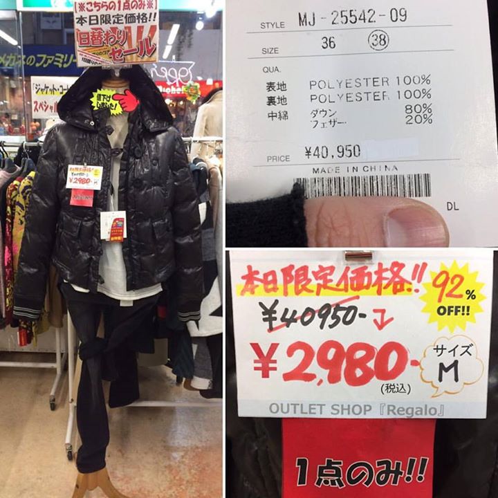 某ブランドのダウンジャケット(ダウン80%フェザー20%)定価40950円→レガーロ特価【※92%OFF※】2980円!!