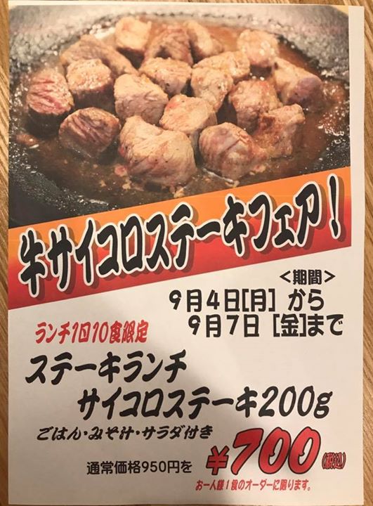 今日のおいしい通信は十三日(トミカ)のMARU3さん。 投稿者: 盛岡市肴町商店街振興組合青年部(4S会)2017年9月4日Facebook News 今日のおいしい通信は十三日(トミカ)のMARU3さん。牛サイコロステーキフェアとのことです! — 牛サイコロステーキフェアのお知らせです! facebookのみの告知です^ ^ 9月4日〜7日まで、サイコロステーキフェアーを開催致します。 ランチのみの提供になりますが、1日限定10食。 通常950円(税込)を期間中700円(税込)でのご提供! ぜひ、ご来店下さい^ ^! Facebook \ 最新情報をチェック / 共有: X で共有 (新しいウィンドウで開きます) X Facebook で共有 (新しいウィンドウで開きます) Facebook 関連 FacebookXBlueskyHatenaCopy