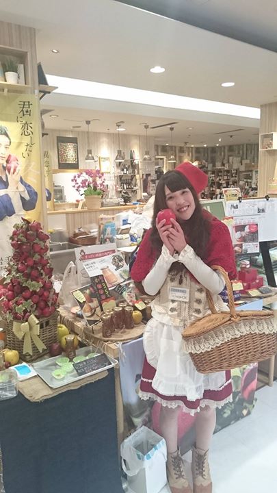 1階ごちそうマルシェ特設コーナーで開催中の「すっぱいりんごの専門店・キミドリ販売会」に、キミドリ専属のリンゴガールが来ています😍めちゃめちゃかわいいです!!